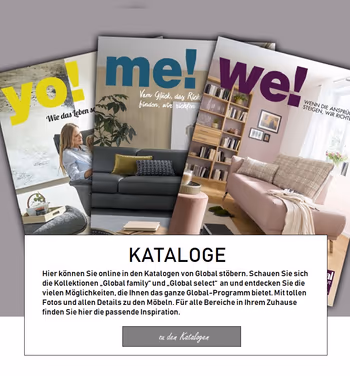 Modernes, stilvolles Wohnen steht bei vielen Menschen ganz oben auf ihrer Wunschliste. Sich zuhause gut einzurichten und ein Lebensumfeld zu schaffen, in dem man sich wohl und geborgen fühlt, gehört seit jeher zu den Grundbedürfnissen. Wir von Global Wohnen haben es uns zur Aufgabe gemacht, Menschen mit Einrichtungsideen zu begeistern. Mit schönen Möbeln, die modernes Design und clevere Funktionen verbinden. Die mit hoher Qualität überzeugen und durch ihre Langlebigkeit mit Nachhaltigkeit punkten. Denn wir sind überzeugt: Möbel müssen zu den Menschen passen, nicht umgekehrt. Deshalb gehören Form und Funktion zusammen. In unseren drei Marken-Kollektionen „Global family“, „Global select“ und „Global comfort“ können Sie viele passende Ideen für Ihr Zuhause entdecken. Bei uns finden Familien ihr Wohnglück, Wohnkenner ihre Designmöbel und Komfortliebhaber ihren Wohnkomfort. Alle können viele neue Wohnstories erzählen. Aber sehen Sie selbst! Stöbern Sie auf unserer Webseite und lassen Sie sich von den Wohnideen von Global inspirieren.